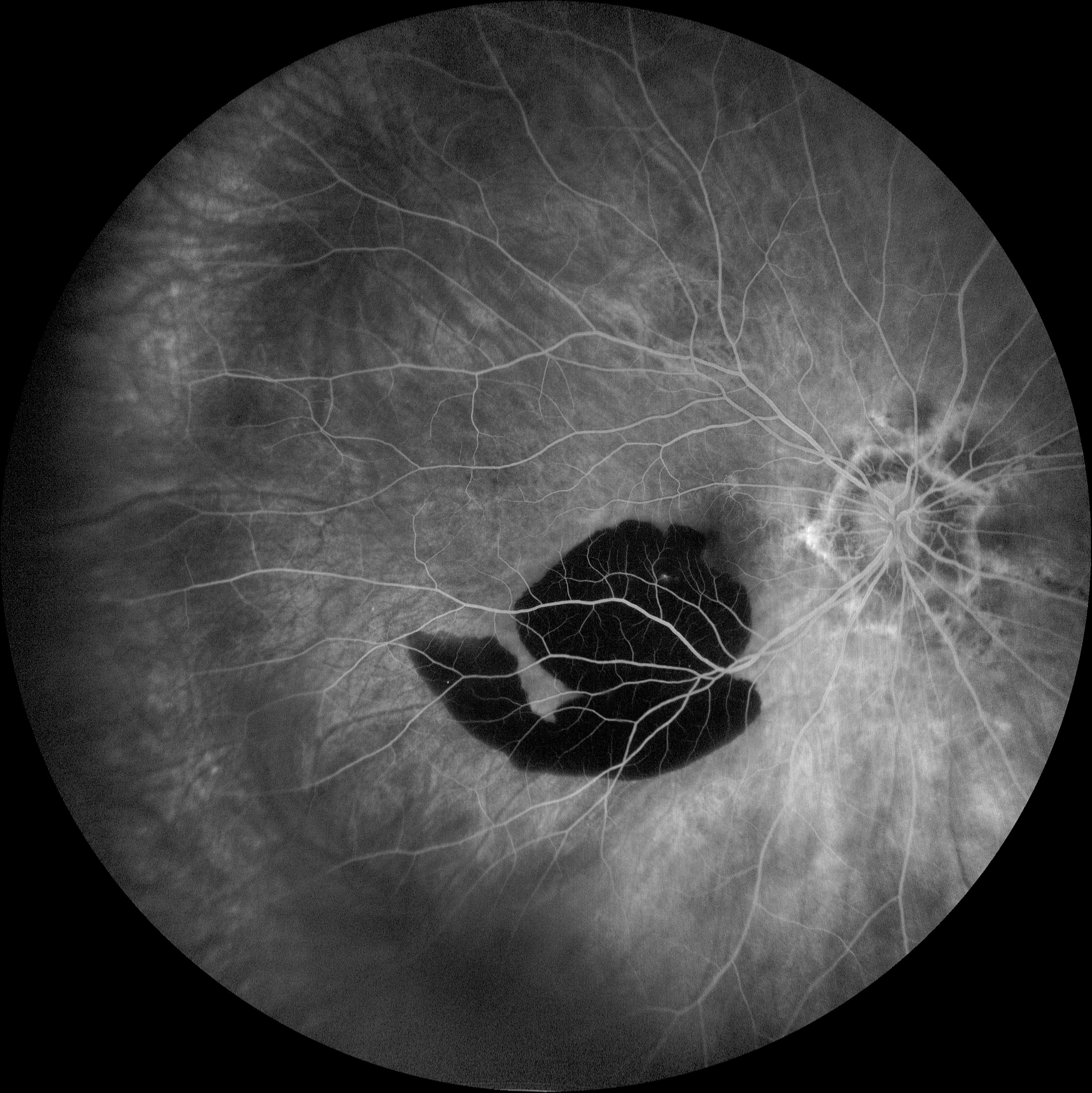Lesion Presented by Ashley Schell, OCT-C This photograph received Honorable Mention, Fluorescein Angiography (45° - 60°) in the 2025 OPS Scientific Exhibit. Filed Under Cornea OPS Photo